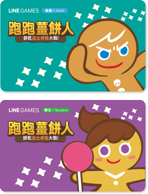 LINE GAMES一卡通第二彈!年初推出的LINE GAMES遊戲「跑跑薑餅人」短短半年全球下載數突破3000萬,其中台灣下載量也已超過 600 萬! 為了慶祝這個里程碑,即日起,「跑跑薑餅人」一卡通將與您並肩作戰!活動期間內購買「跑跑薑餅人」一卡通即贈虛寶刮刮卡一張,除了讓你搭車、購物攜帶著可愛的薑餅人外,更給你強而有力的虛寶,快從烤箱中拯救可愛的餅乾們吧!