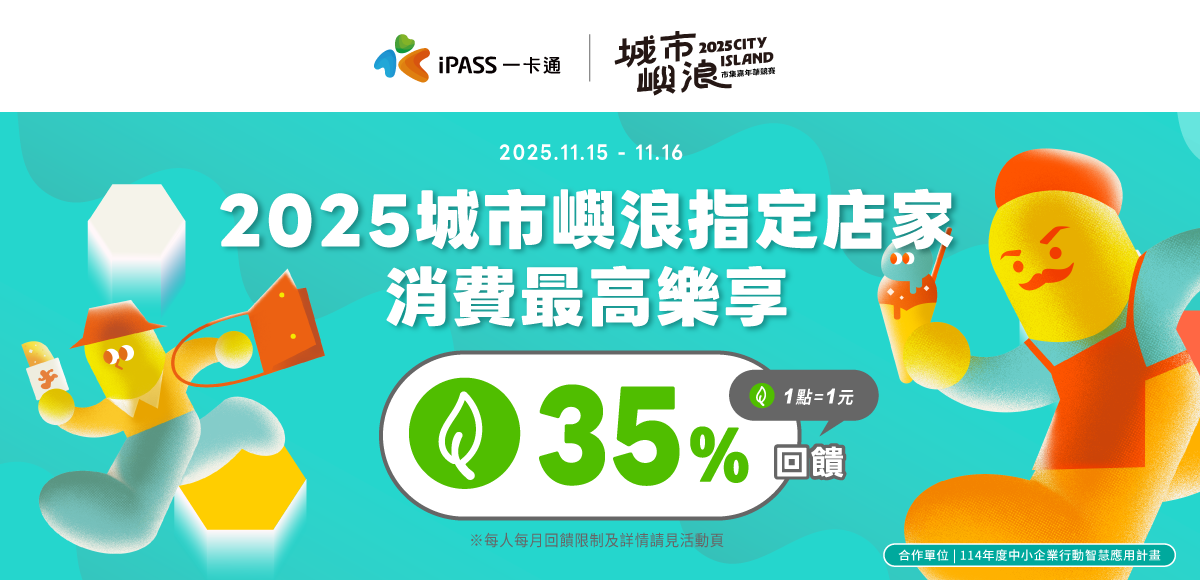 【2025 城市嶼浪指定店家】用 iPASS MONEY APP 付款,最高樂享 35% 回饋!