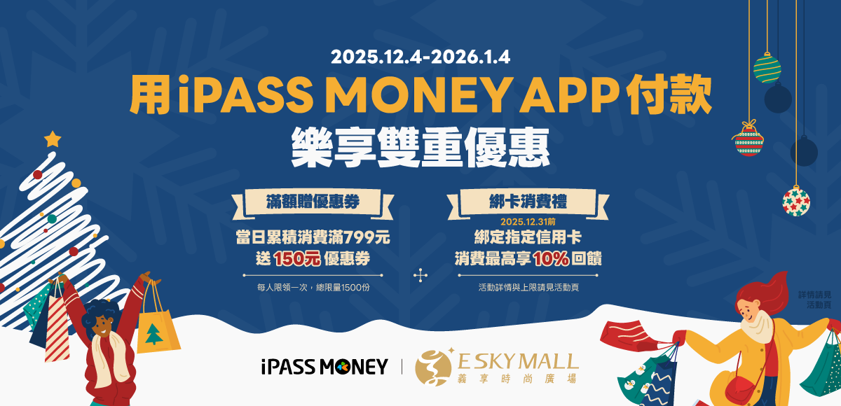 當日實際支付金額累積滿 799 元,贈送 iPASS MONEY 50 元優惠券 3 張(共 150 元)。