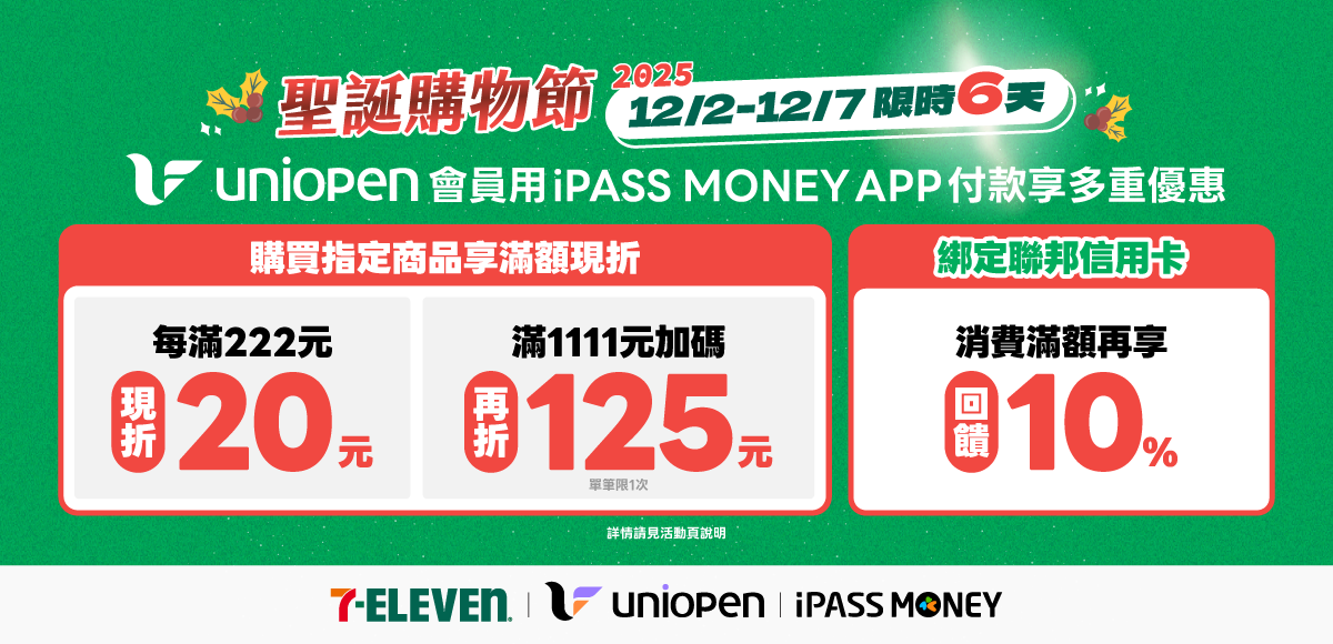 【7-ELEVEN】歡慶聖誕就用 iPASS MONEY APP 付款,樂享多重回饋!