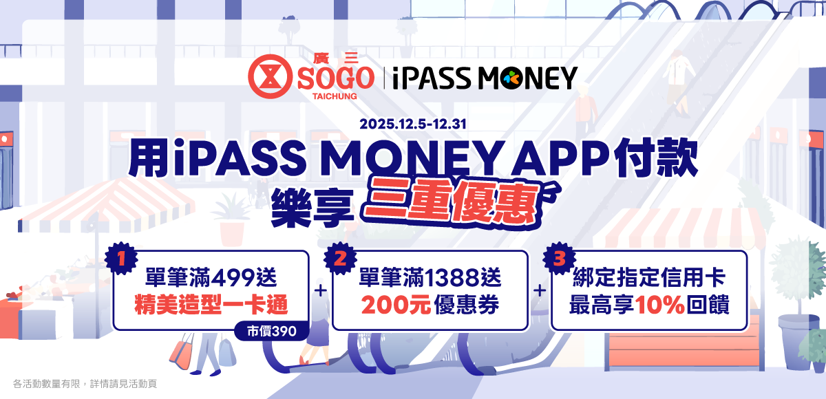 【廣三SOGO】用 iPASS MONEY APP 付款樂享三重優惠!