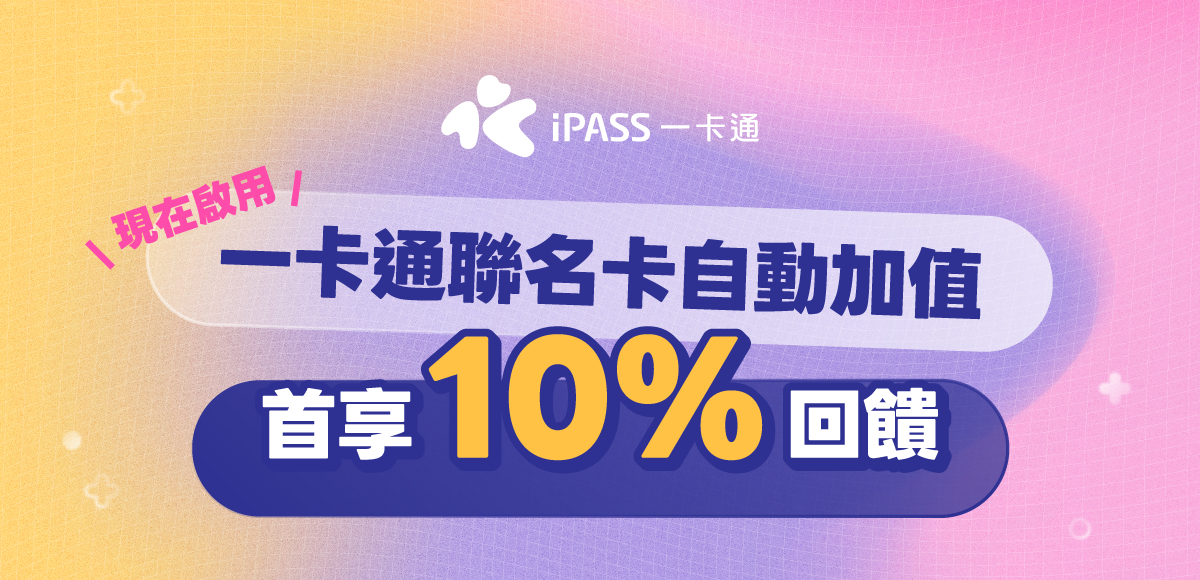 活動內容:於 2025 年 1 月 1 日起迄今未動用過一卡通自動加值功能之聯名卡,並完成指定任務(*),享一卡通自動加值 10% iPASS MONEY 儲值金回饋,每卡限回饋一次(最高 50 元),活動期間每人最高回饋 150 元,活動總回饋上限 2 萬份。