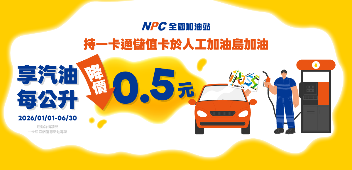 活動內容:活動期間持一卡通儲值卡/一卡通聯名卡於全國加油站使用一卡通功能扣款,汽油每次加滿 1 公升以上,每公升降價 0.5 元,其餘消費類別均不適用。